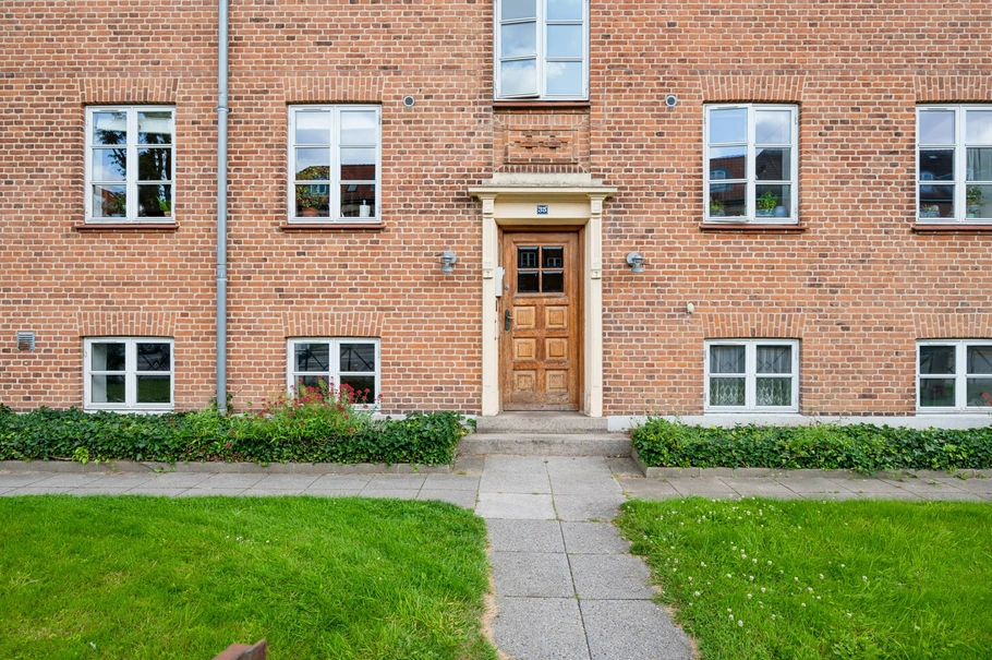 Denne markante boligudlejningsejendom, beliggende i det attraktive Frederiksbjerg-område i Aarhus C, er en repræsentativ bygning fra 1929. Ejendommen fremstår med en klassisk rød teglfacade og symmetrisk vinduesfordeling, som er typisk for dens opførelsesperiode. Den historiske karakter understreges af de velplejede grønne områder omkring bygningen, der bidrager til ejendommens æstetiske appel.
