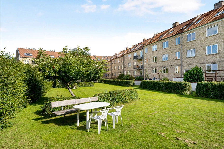 Ejendommen er beliggende på en 209 m² stor grund, med egen lille baghave/ugeneret gård til lejernes frie afbenyttelse og som støder op til hyggeligt og velholdt fælles gårdhaveanlæg, som områdets ejere og brugere drager meget gavn af.