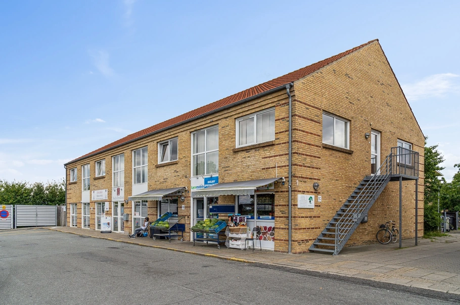 Gedigen og meget regulær ejendom, opført i gule mursten med rødt betontag i år 2004. Ejendommen har en grund på 450m², så der er lidt plads på bagsiden til renovation mv.. Ejendommen er i to plan og meget fleksibelt indrettet så der kan være alt mellem 2 og 4 lejemål. I dag er den udlejet til dyreklinik og grønthandler i stueplan og psykolog på 1 sal.