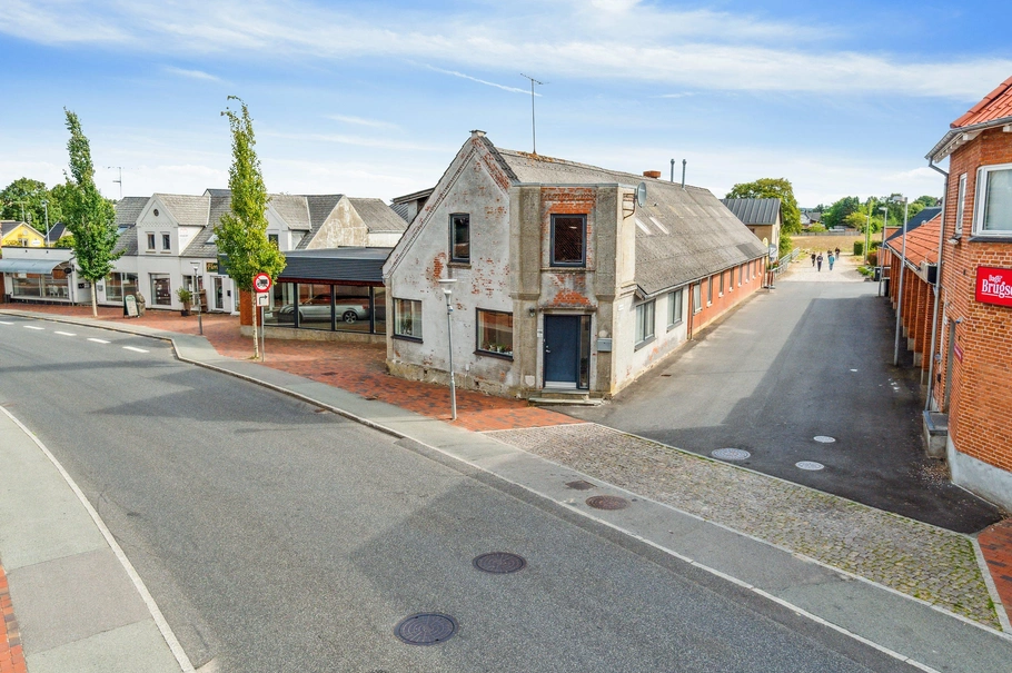 Velholdt og centralt beliggende bolig og erhvervsejendom hvor der i rigtigt mange år har været drevet automobilhandel med salgs-/og udstillingslokale, samt tilhørende rummeligt bil-/og klargøringsværksted. Meget synligt placeret i byen direkte ud til hovedgaden. Ejendommen er oprindelig opført i 1912, med ombygning til nuværende anvendelse i 1968 og igen for erhvervsdelen en større renovering i 2010 og ejendommen rummer en privatbolig på ca. 88 m2 med uudnyttet tagetage, en udstilling/salgskontor på 116 m2 og endeligt et stort værksted m/tagetage og delvis kælder, samlet areal på 350 m2. Hele herligheden beliggende på en 1.339 m2 stor grund, hvor "indkørslen" deles med byens Dag´li Brugs!