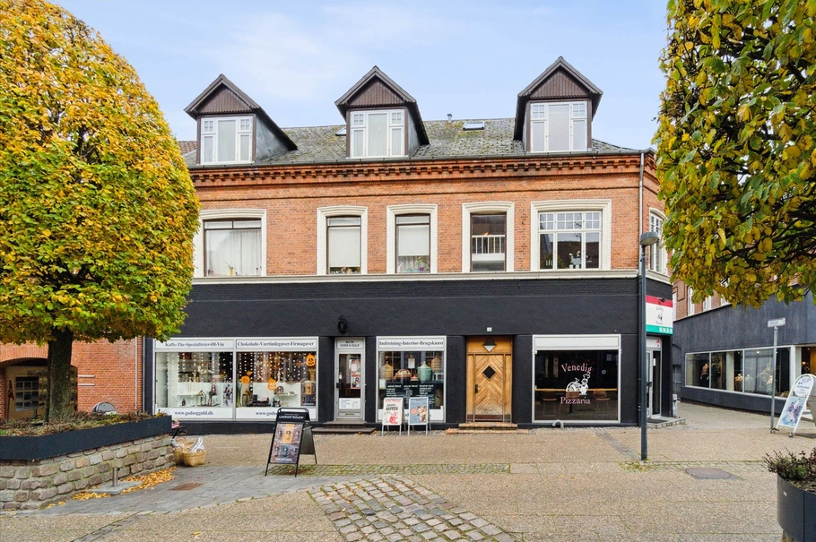 ligeledes er udlejet til én lejer: Romantisk forretning med dametøj og ”nips” til hjemmet: I henhold til BBR er her et samlet erhvervsareal på 154 m² i bygning