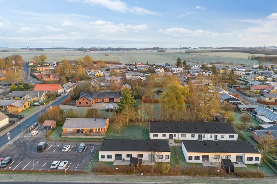 På Tåstrupvej 21–23 i Selling, tæt ved Hadsten og centralt placeret mellem Randers og Aarhus, udbydes nu en velbeliggende investeringsejendom bestående af syv nyopførte rækkehuse (2025) samt et ældre dobbelthus.