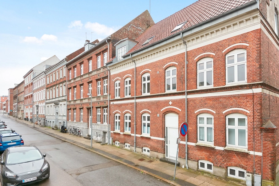 Flot ejendom opført i 1917 i røde mursten. Ejendommen er bl.a. ombygget/renoveret i 2006. Renoveringen omfattede bl.a. nyt tag, efterisolering af tagkonstruktion, facaderenovering, nye vinduer, brandsikring af fortrappe og ombygning af lejligheden 1.sal tv., herunder nyt badeværelse og køkken.