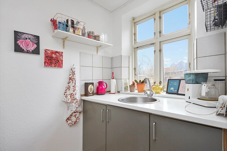 Ejendommen har en pæn renoveret facade og et fint gårdmiljø – desuden fælles vaskekælder til ejendommens lejere.