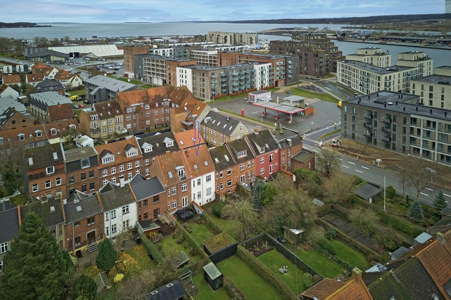 Velbeliggende ejendom på Emil Bojsens Gade tæt på havnen, Bilka-området og midtbyen.