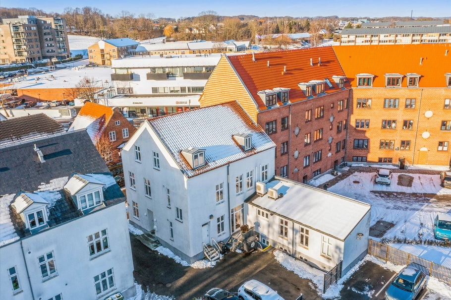 Ejendommen er attraktivt beliggende helt i centrum af Odder med gågadenettet omkring Rosensgade indenfor 100 meters afstand. Bygningen er oprindeligt opført i 1917 med løbende om- og tilbygninger, senest i 2017 i forbindelse med nuværende ejers overtagelse herunder deres indretning af ejendommen til egne formål. Således har ejendommen siden været anvendt til hovedkontor for rådgivningsvirksomheden Thvilum, der arbejder med digital lednings registrering til forsyningsværker. Her har ca. 20 medarbejdere deres daglige gang, men grundet pladsmangel og da man for nylig er blevet en del af Kamstrup, er planen indenfor en kortere periode at fraflytte ejendommen.