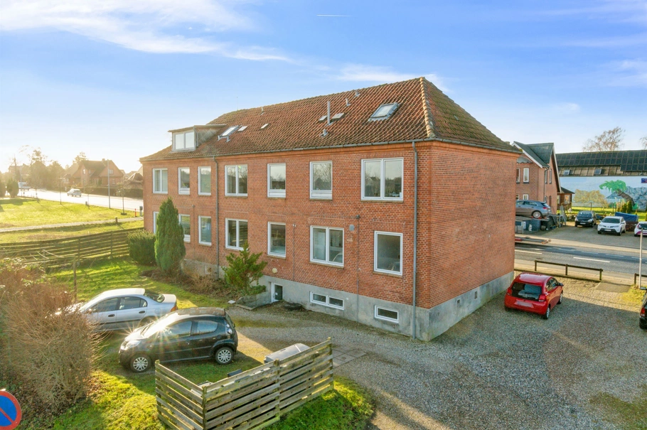 Ejendommens nord og sydvendte gavl er udlejede til erhvervslejere.