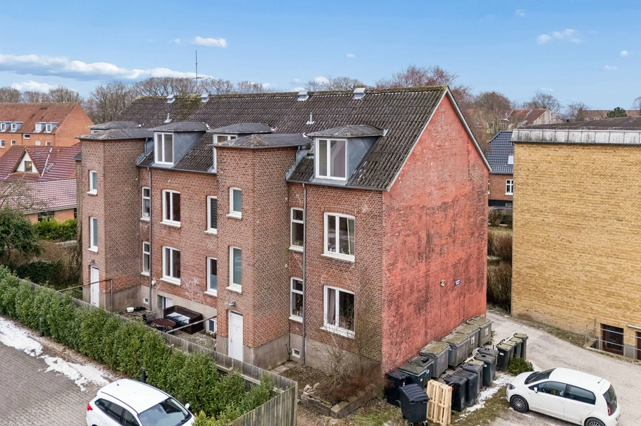 Ejendommen er tilbagetrukket på grunden, og med god luft omkring. Derudover er ejendommen beliggende i gåafstand til midtbyen og ungdomsuddannelser (Statsskolen & Tradium), skole, institutioner og indkøb.