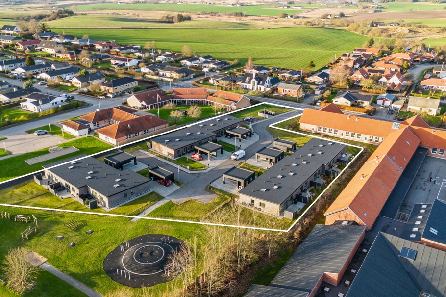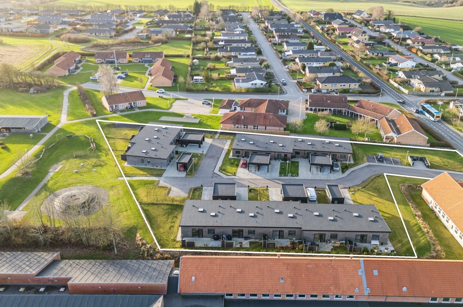 Tolv nyopførte, udstykkede rækkehuse, der alle er udlejede på gode lejekontrakter