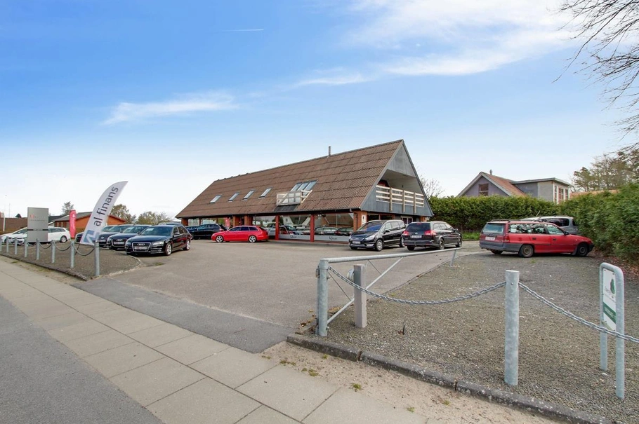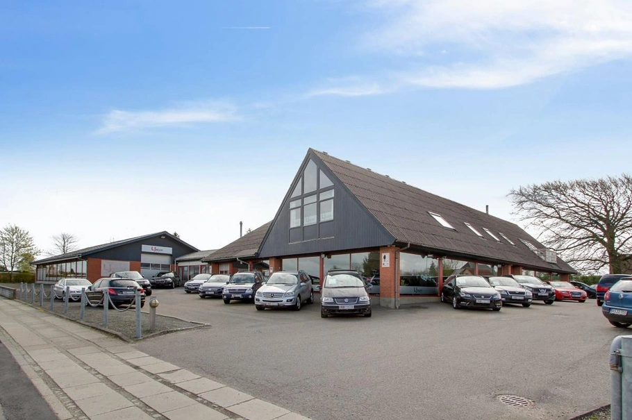 Ejendommen består af 2 sammenbyggede bygninger, der pt. er indrettet til automobilhandel til tilhørende udendørs udstilling.