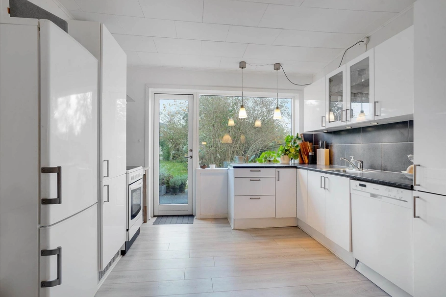 Der er god loftshøjde i lejlighederne i stueplan, som er hvide glatte lofter og vægge samt lyse laminatgulve og charmerende fyldningsdøre. Lejligheden på 1. sal er charmerende med skråvægge og synlige bjælker Alle lejlighederne har god rumstørrelse og er henholdsvis 2, 3 og 4 værelses. Badeværelser er og køkkener med lyst interiør, fremtræder i orden og absolut tidssvarende.