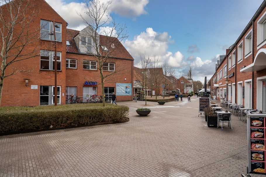 Erhvervsdelen består samlet af 3.583 m² med ALDI Danmark Aps som den største lejer, men der er også udlejet til stærke lejere om f.eks. MATAS, Køge Apotek.
