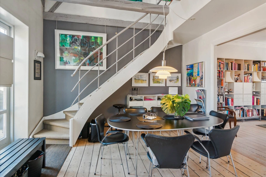 Ud mod Vestergade på 1. og 2. sal er der desuden indrettet en boliglejlighed på hele 142 m². Denne bliver ledig ved overtagelse. Der er tale om en lejlighed i særledes god stand, charmerende og med højt til loftet. Den er indrettet med et stort køkken/alrum, hvor der er åbent til kip, som giver en rigtig skøn rumfølelse. Derudover har den to charmerende stuer, toilet, 3 værelser samt bad/toilet.