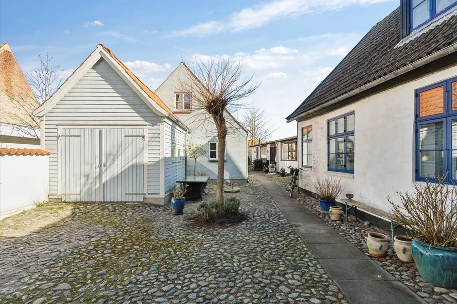 På ejendommen er der desuden en hyggelig have med æbletræer og hyggelige kroge. Der er til ejendommen også tilknyttet en gård med brosten, hvor der er mulighed for parkering af 1-2 biler. Udover parkeringspladserne i gården er der bagerst på ejendommen en parkeringsplads, hvor der er plads til 4 biler.