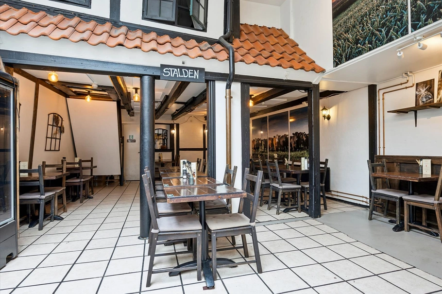 Skomagergade 42 i Roskilde er en blandet ejendom med både en større erhvervs- og boligenhed. Erhvervsenheden huser Café Korn, som er en populær café/restaurant på 401 m² med en fremragende beliggenhed i Roskilde centrum for denne type forretning. Lejekontrakten blev senest fornyet med en ny bindingsperiode i juli 2023 og 5 år frem. Lejer har ansvaret for vedligeholdelse og eventuel fornyelse af ejendommens facade, vinduer og døre mod Skomagergade jf. kontrakten. Caféen er udstyret med nyere fjernvarmeinstallation og en varmepumpe i køkkenet, hvilket bidrager til en moderne og energieffektiv drift. Café Korn er en pålidelig og stærk lejer, som er tilfredse med lejemålet.