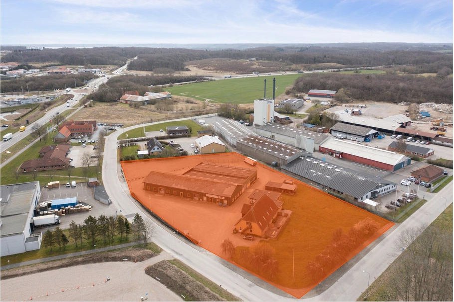 Grundarealet udgør i alt 9.531 m2. På grunden er der en ældre bygningsmasse, som delvis er udlejet. Bygningsmassen består både af nogle erhvervsbygninger samt en enkelt bolig. Bygningsmassen står primært i den oprindelig stand og der er derfor rig mulighed for, at en køber kan sætte sit eget præg på ejendommen eller alternativt opføre nyt. Arealet omkring ejendommen er primært befæstet med grus samt græsarealer ved boligen.