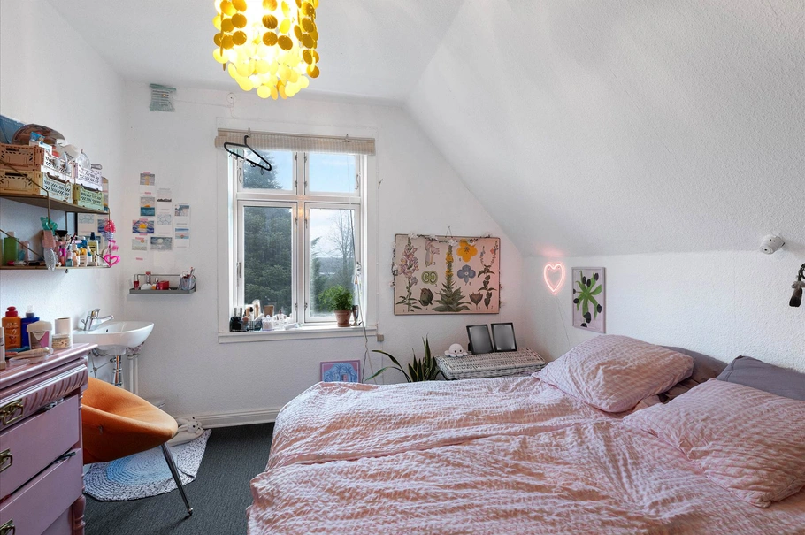 Hovedlejligheden er på 95 m². Den omfatter en stue, køkken, to soveværelser og et badeværelse.