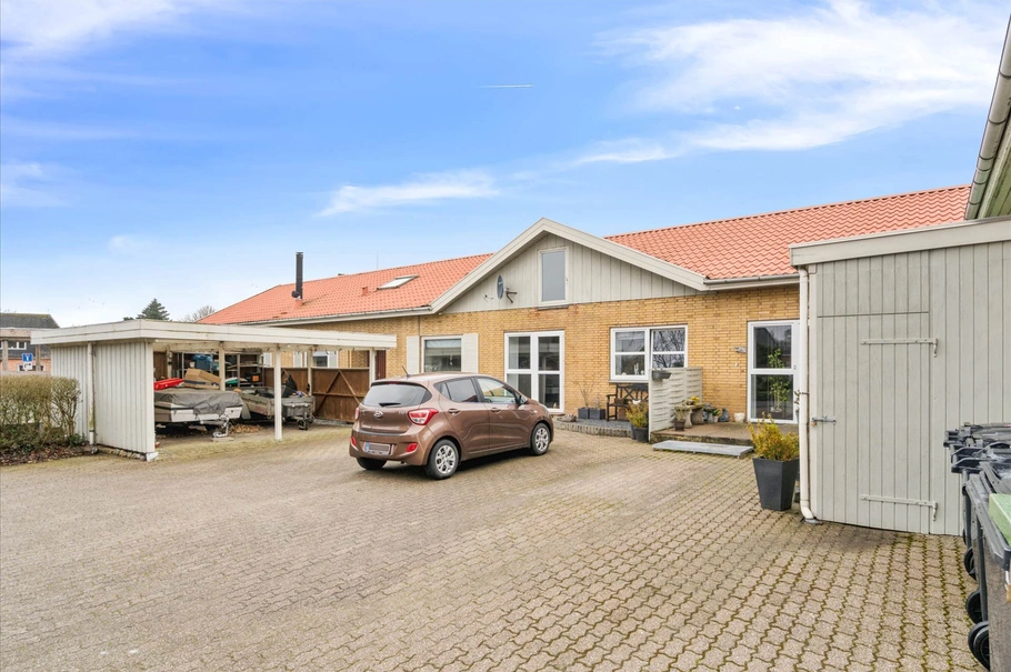 Ejendommen er centralt beliggende i Tinglev med 3 bolig lejemål og 1 stort erhvervslejemål.