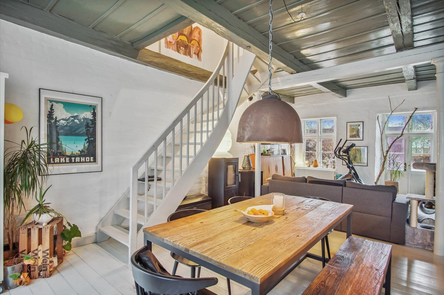 Alle lejlighederne fremstår i meget fin stand med mange af de gamle og skønne detaljer og materialevalg fra husets opførelse bibeholdt, såsom synlige bjælker og de oprindelige loftsbrædder.