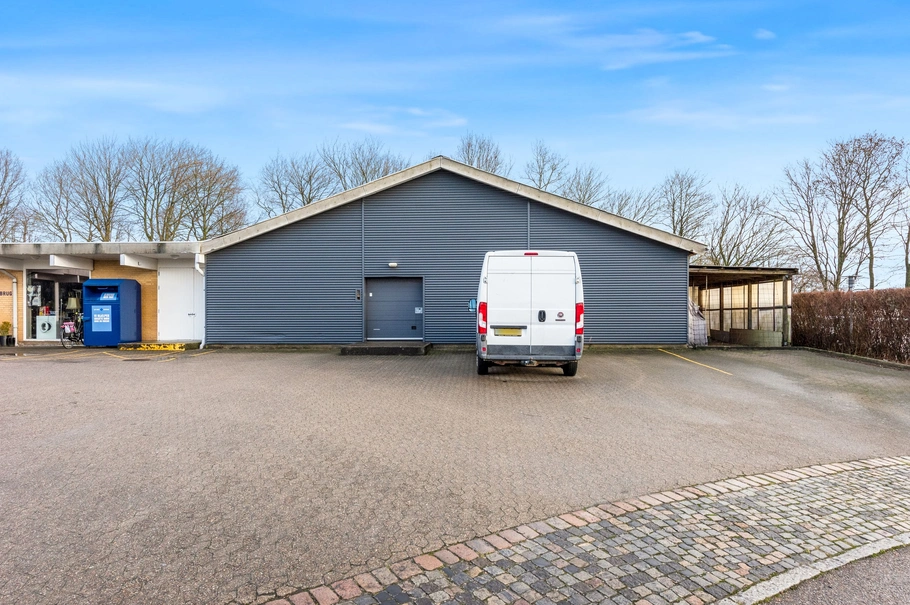 Midt i det bynære erhvervsområde mellem Bov og Padborg ligger denne ejendom.