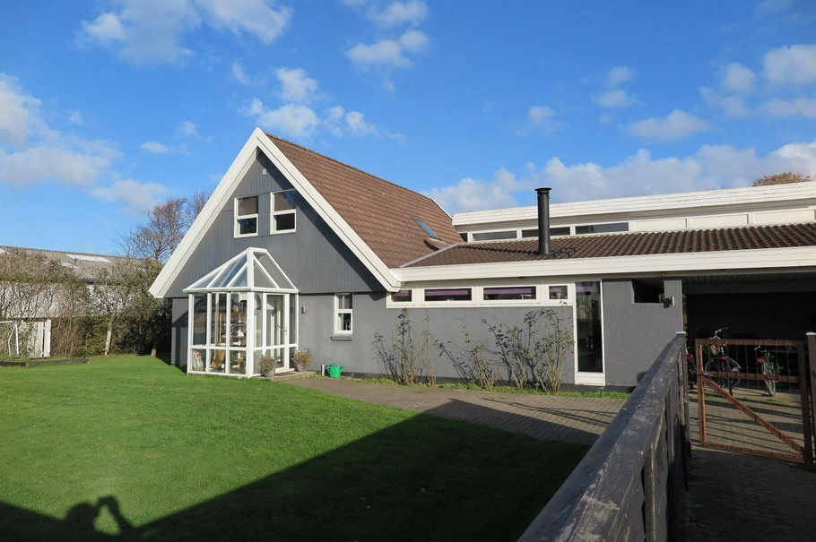 Til boligen hører desuden en 35 m² stor carport samt et særskilt udhus på 45 m². Boligen er udlejet til stabil lejer.