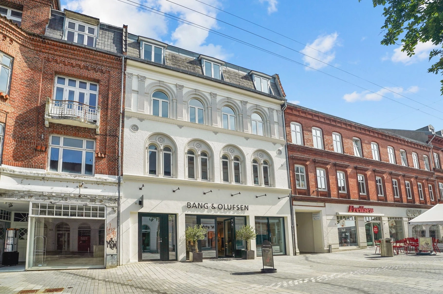 Nordicals erhvervsmæglere Esbjerg udbyder en af de mest kendte ejendomme i Esbjerg til salg, nemlig Kongensgade 41. Ejendommen har tidligere dannet ramme om herretøjsforretningen Far & Søn - i dag Tøjeksperten . I dag er den nye eksklusive lejer af butikken Bang & Olufsen med deres helt nye konceptforretning. Forretningen er totalt istandsat med helt ny facade og helt nyt lysindfald fra passagen. Det udlejede butiksareal udgør 380 m², heraf 320 m² salgsareal og 60 m² kontor, frokostrum, lager og toilet. Lejemålet er uopsigeligt indtil februar 2029.