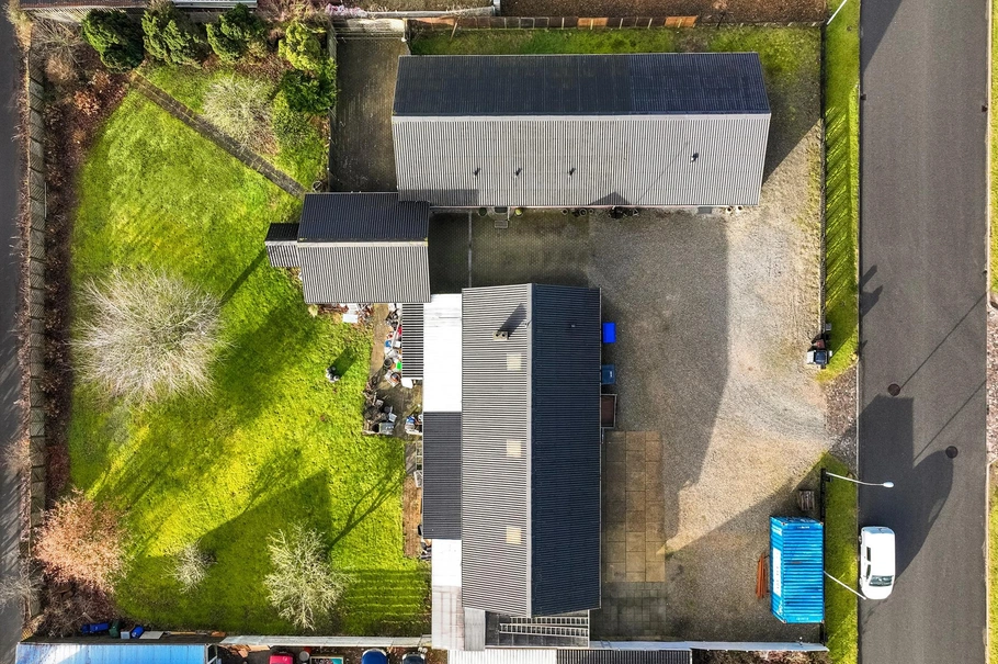 Ejendommen er jf. BBR opført i 1975 og renoveret i 2015 med en bolig på 178 m² og separate erhvervsbygninger på i alt 247m². Boligen fremstår meget pæn og velholdt med et flot køkken, spisestue, stort badeværelse, åben stue og 3 store værelser.