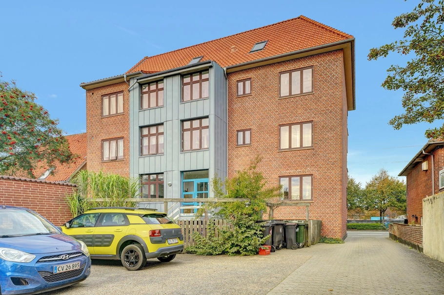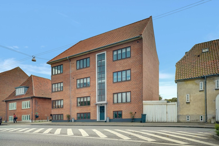 Ejendommen ligger i Rådhuskvarteret med parkering i gården og er indrettet til lejligheder på henholdsvis 68 m² - 156 m². Flere af lejemålene er med lyse afhøvlede gulve, lukket sydvendt helårs altan, køkken med opvaskemaskine, storstue, værelse, badeværelse med mulighed for vaskemaskine. Alle lejemålene har dørtelefon, tørrerum i kælder, loft og kælderrum. Der er ligeledes aflåst cykelskur