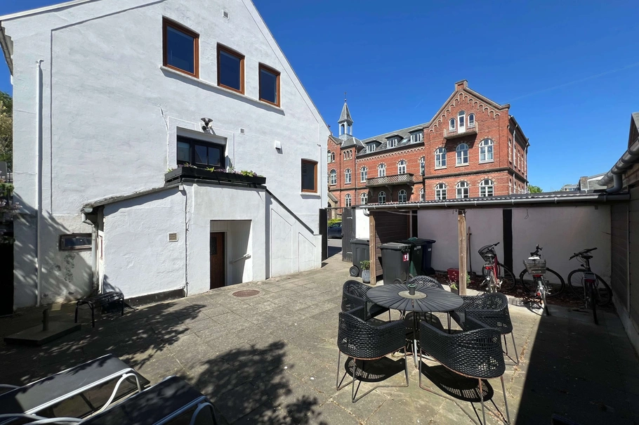 Tilhørende ejendommen er der et fantastisk gårdmiljø, hvor man bl.a. har mulighed for at parkere sin cykel i et cykelskur. I forlængelse med garagen har man udnyttet pladsen til at lave 1 opbevaringsrum til hvert lejemål. Man har adgang til opbevaringsrummene fra gården. Ejendommen Nørregade 58, 6700 Esbjerg har brugsret over garagen.