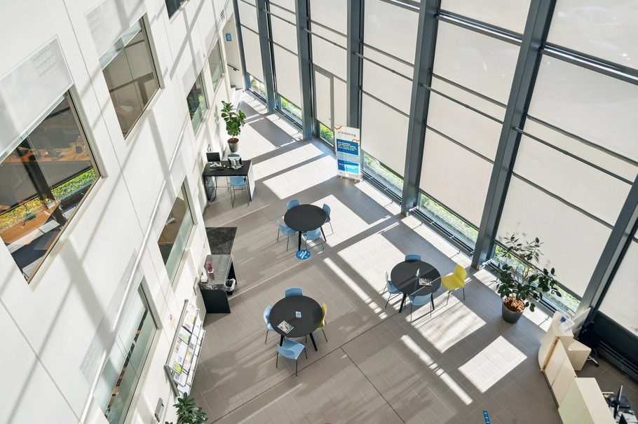 I stueetagen er der derudover indrettet personalekontorer og enkelte møderum. På 1. sal er der ligeledes cellekontorer og samtalerum. 2. sal er indrettet som mødecenter med større møde- og undervisningslokaler samt kantine. I forlængelse af kantinen er der en større tagterrasse.