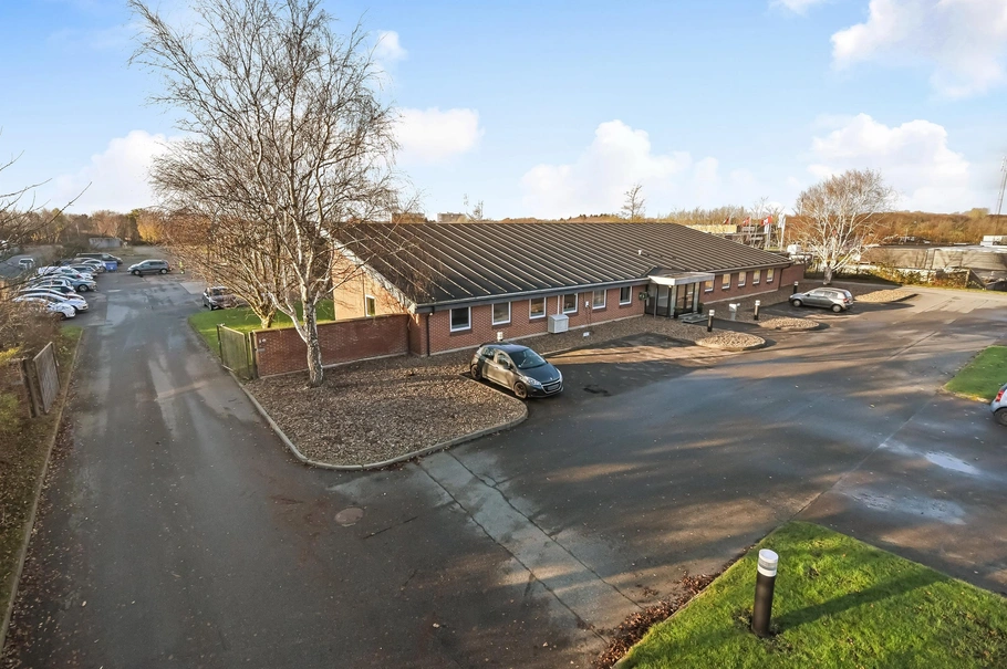 Bygningen 2 er opført i 1981 i røde mursten og er indrettet med 553 m² kontor og personale faciliteter med flot glas indgangsparti.