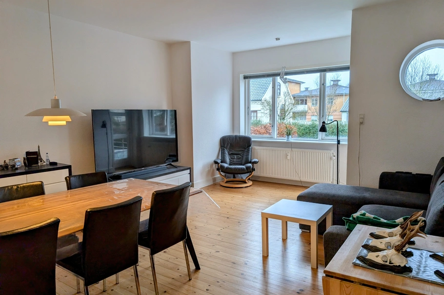 Stuen, 107 m2: 4 værelser, badeværelse samt køkken.