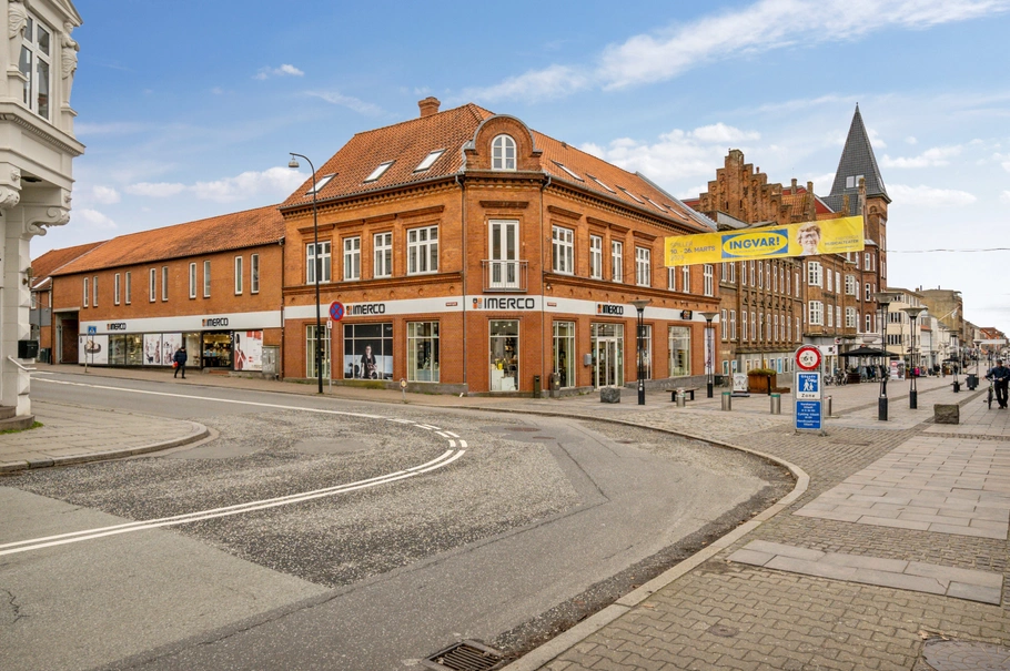 Ejendommen ligger attraktivt på hjørnet af Vendersgade og Danmarksgade, som er gågade.
