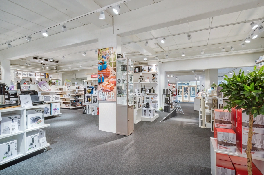 Erhvervslejemålene består af en stor, flot Imerco-butik i stueetagen, hvor der netop er isat ny, flot indgangsdør, ligesom ventilationen er forbedret. Til lejemålet hører kælderareal. Derudover er der foreningslokaler på 1. sal, udlejet til Round Table.