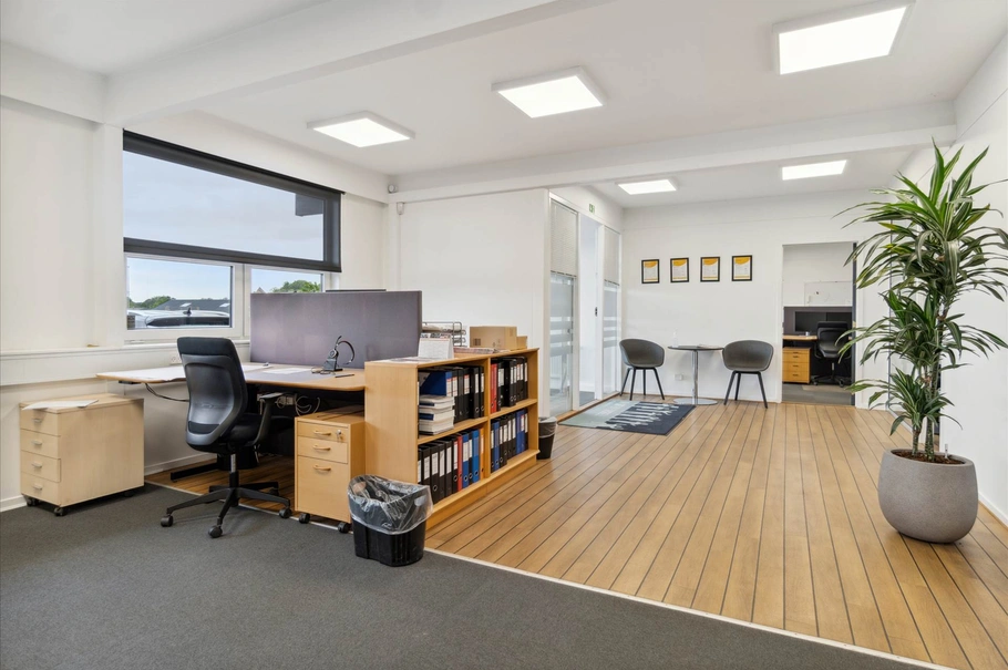 Klar med forholdsvis nye lejere, som er flyttet ind i 2022, og i deres lejekontrakt har uopsigelighed frem til februar 2027. Lejer har i forbindelse med udvidelse af kontorer selv afholdt byggeomkostningerne, derfor er der et lån i ejendommen som har en anderledes løbetid end normalt. Lån stort oprindeligt 2.700.000 kr. afvikles med 60 ydelser af lejeren. Aftalen er ikke indarbejdet i grundlag for ejendomshandel.