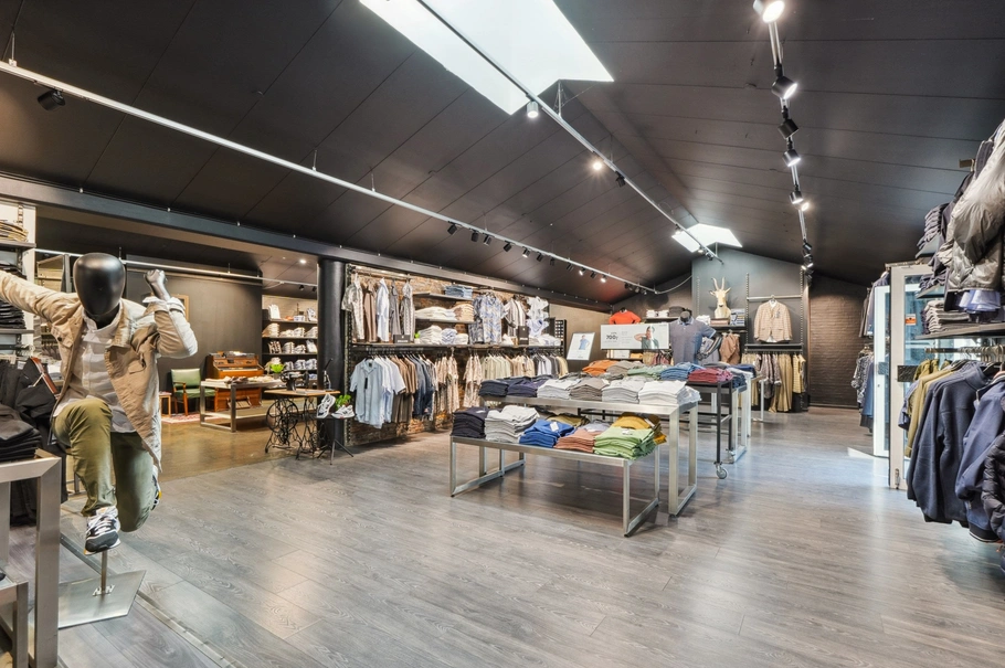 Udover den brede facade har lejemålet også en god loftshøjde, idet loftet i den bagerste del af lokalet er ført til kip. Ovenlysvinduerne i kip sikrer et godt lysindfald i den bagerste del af butikken.
