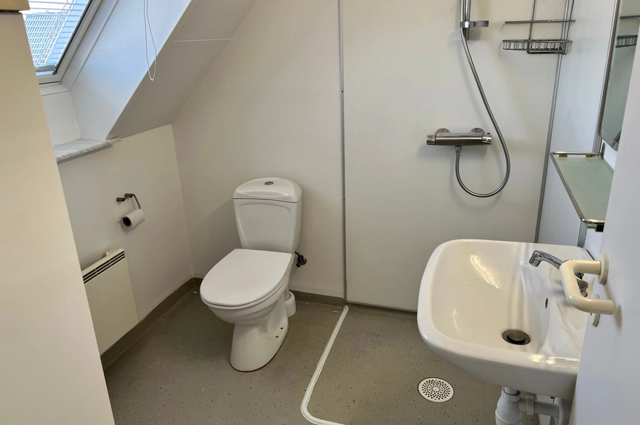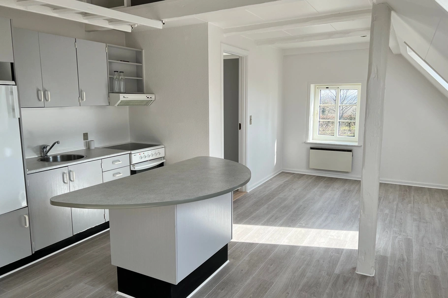 1F - 42 m2: 2 værelser, hems, badeværelse og køkken - Renoveret med maling og nyt gulv samt køkken i 2022.