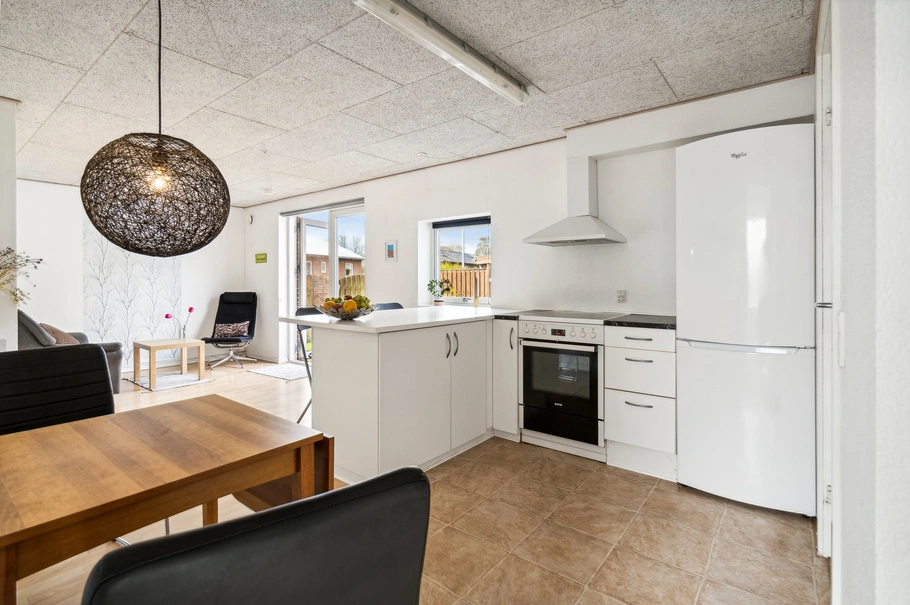 Lejemålet er i stueplan indrettet med bryggers, entre, køkken, spisestue og stue samt på 1. sal repos, badeværelse samt 2 værelser.