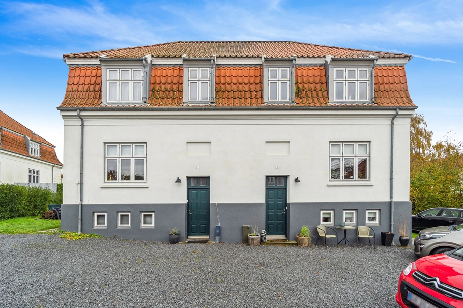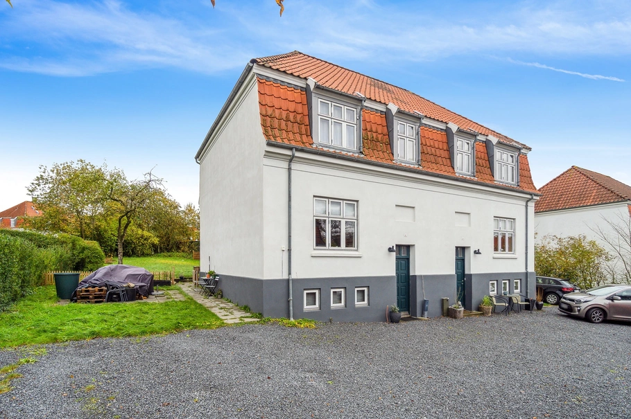 Bygningen er blevet facaderenoveret, og der er nye vinduer i hele ejendommen. Der er stor grusbelagt indkørsel mod vejen, hvor der er plads til parkering for lejerne. På bagsiden af bygningen er der terrasseareal samt gode haver til lejerne, hvor hver lejer har sin del af haven.