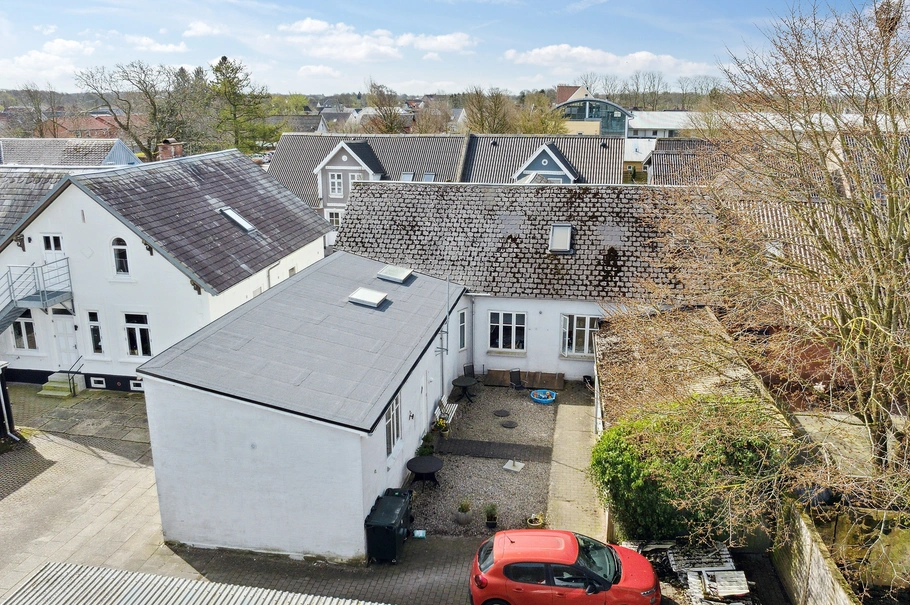 Ejendommen er velbeliggende midt i byen, hvorfra der er kort afstand til indkøbsmuligheder, skole, idrætsfaciliteter og alt hvad Vamdrup ellers har at byde på.