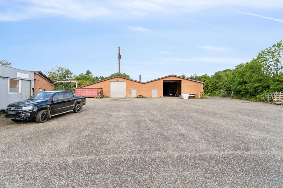 Ejendommen ligger på en stor grund på 21.077 m², hvoraf en stor del kan udnyttes til udendørs opbevaring, parkeringsfaciliteter m.v.