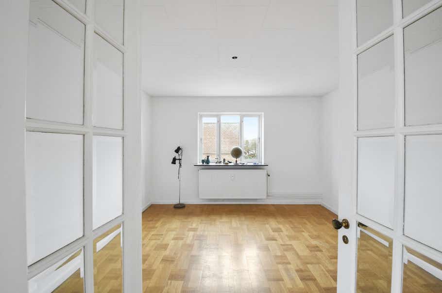 I stue etagen er der en lejlighed på 101 kvm, og på 1. sal er der en lejlighed på 99 kvm. På 2. sal er der en lejlighed på 55 kvm. Herudover er der fuld kælder i bygningen. De to store lejligheder har gode køkkener og badeværelser. På 2. sal er der et rimeligt køkken, et toilet og en håndvask, til lejligheden er der badefaciliteter i kælderen. I kælderen er der vaskemaskiner, tørrerum og et opbevaringsrum til hver lejlighed.