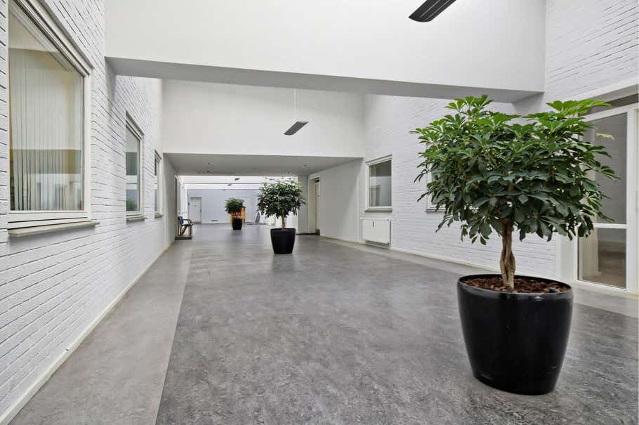 Ejerlejligheden er indrettet med en indbydende bred mellemgang, lignende et forretningstorv, kontoerne har vinduer herud til. Dette er et fællesareal med plads til udstilling, ophold m.m. der er toiletter samt elevator, og bagudgang ud til parkerings pladserne bag ejendommen.