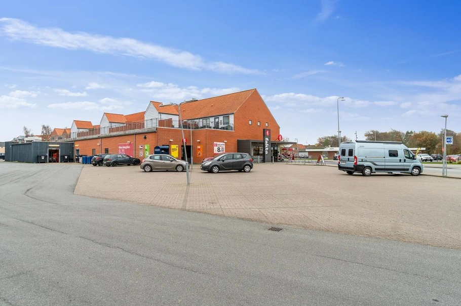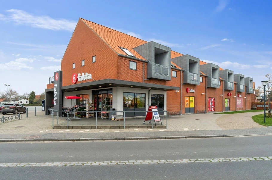 Flot og velholdt ejerlejlighed med Fakta som lejer, beliggende på en god central og synlig placering i Skærbæk, Sønderjylland.