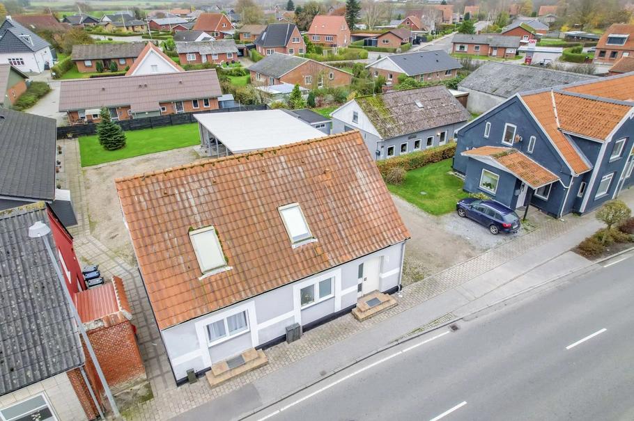 Nordicals erhvervsmæglere udbyder denne mindre boligudlejningsejendom på Storegade i Outrup til salg. Der er to boliglejemål og fem carporte, som udlejes. Ejendommen fremstår i pæn stand og er løbende blevet renoveret.