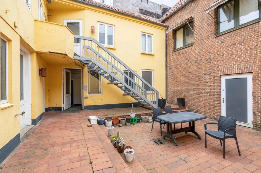 I ejendommens baghus er der et mindre erhvervslejemål på ca. 45 m², der er udlejet til træningssal. Dertil hyggelig, aflukket gårdhave.