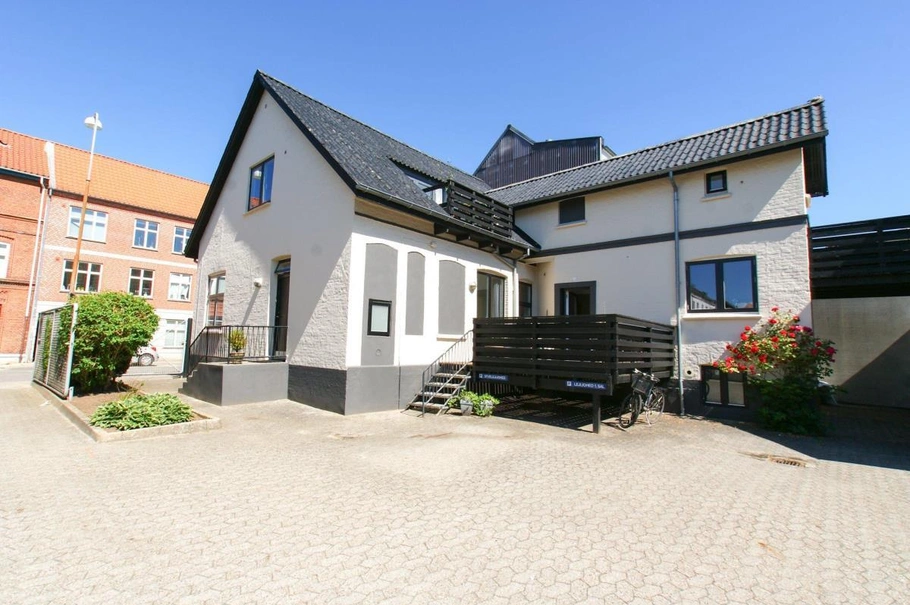 Ejendommen fremtræder flot og velvedligeholdt. Alle lejemål er lyse og indbydende med pæne køkkener og badeværelser. Erhvervslejemålet er udlejet til en rengørings- og servicevirksomhed og vil kunne anvendes af enhver virksomhed med behov for et lille kontor/lager i centrum.