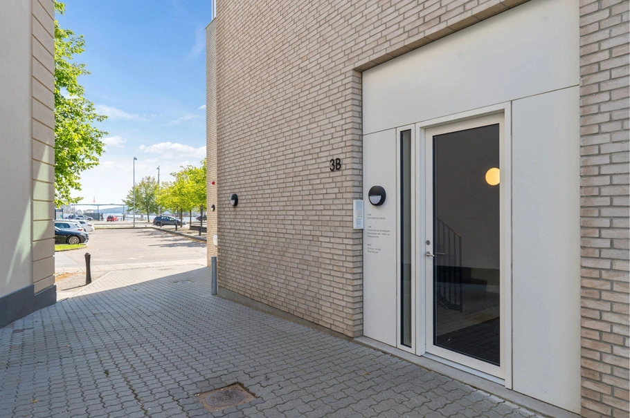 Ejendommen er opført i 2023, og ligger i Vejle centrum med kig mod havnen fra ejendommen og med god synlighed fra rundkørslen på havnen.