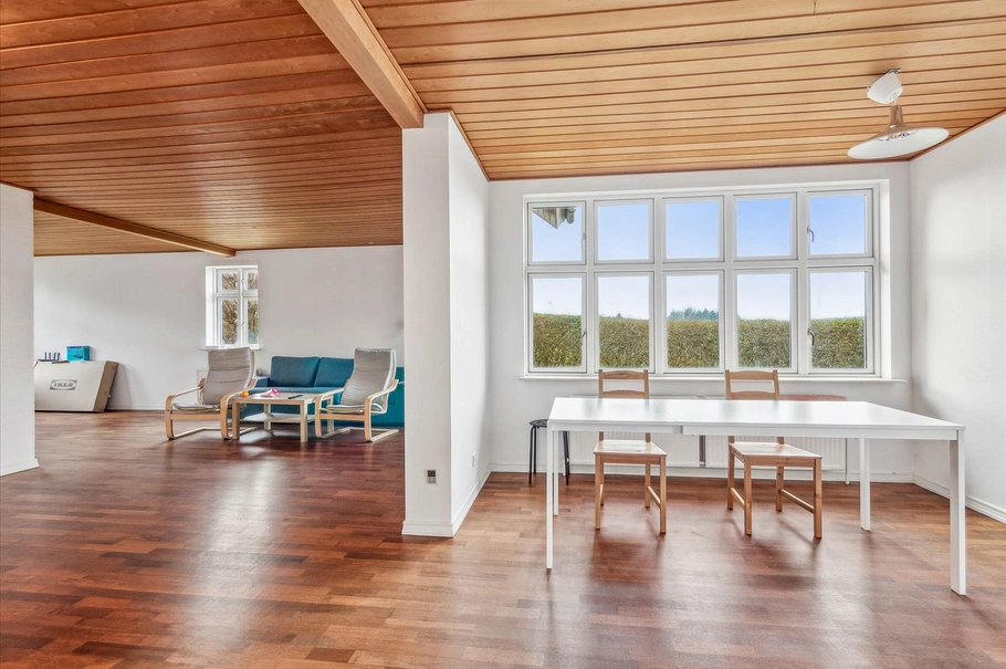 Der er brandsikret op mod lejlighederne på 1. sal. På 1. sal er der indrettet 2 lejligheder på hver 90 m² som er udlejet. De har fælles indgang-/gangareal og egne el-målere. Lejlighederne er indrettet med 2 værelser, toilet/bad og stort, åbent køkken/stue ud i et. De er indrettet med store vinduespartier i gavlen som giver et fantastisk lysindfald. Den ene lejlighed har en terrasse som har aftensol og udsigt ud over marker, og begge lejligheder har adgang til aflukket område i haven.