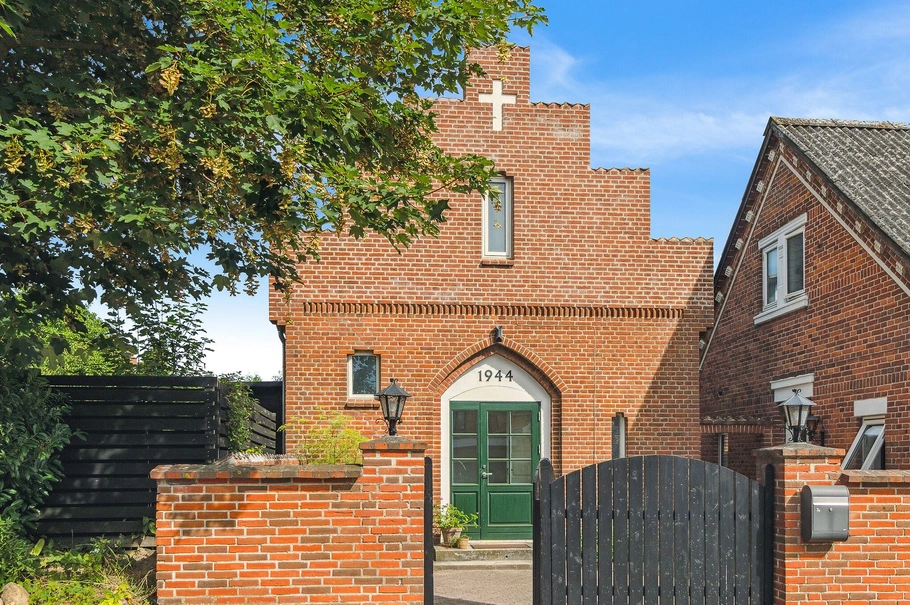 Denne meget smukke ejendom blev bygget i 1925/1944, og dele af ejendommen var oprindeligt en kirke. Kirken er blevet omdannet til beboelse og fungerer i dag som ét lejemål i to plan. Ved siden af kirken får du også en skøn villa i to plan som fungerer som bolig lejemål. Ejendommen ligger på en 394 kvm. grund og de to lejemål har et boligareal på hh.130 kvm. og 95 kvm.